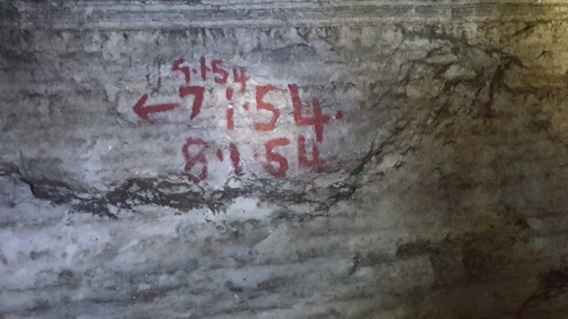 To help keep track of each section, miners wrote the month, day and year on the pillars indicating when that section of the mine had been worked on.