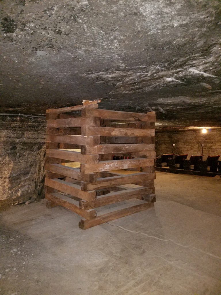 The new hoist was a double-decker elevator built to accommodate 30 people – 15 on the lower level and 15 on the upper level.   The new elevator also allowed for larger items to be brought into the mine making the process of harvesting salt easier and quicker for the men below.  Some items would require the men to disassemble them so it could fit in the hoist and reassemble it once they were in the mine.